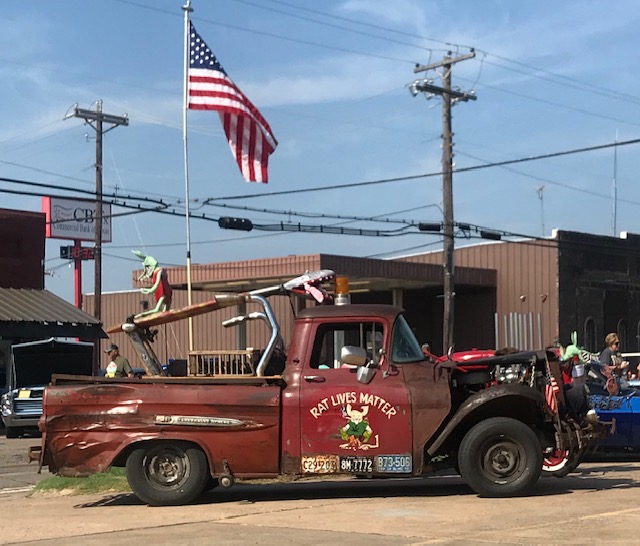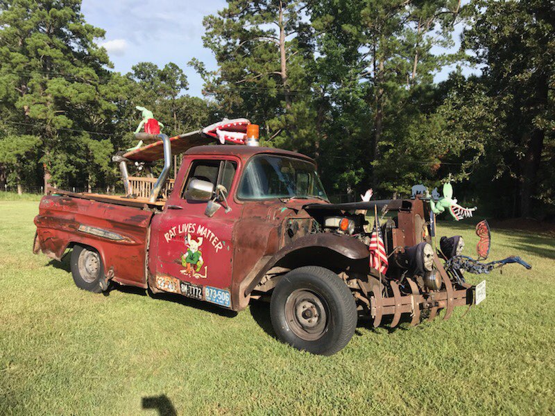We have got little critters that will run out from under the truck and make the crowds squeal. We have a little rat on the hood that has been many a mile through rain and sunshine and he is still there. We have a little rat on the dash that disappeared once but showed back up under the seat.