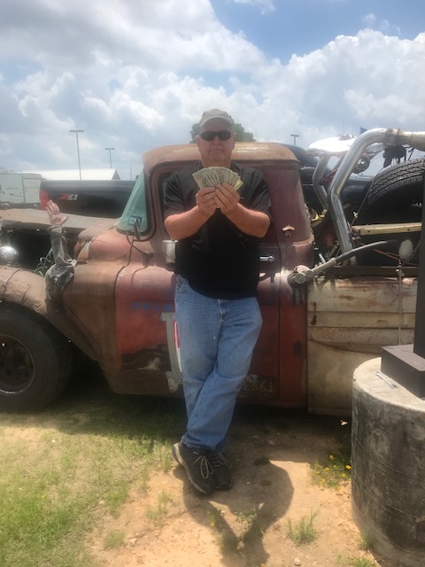 This is a swap meet story and a truck in the making. We were at the swap meet in Conroe and were all just cruising around on the golf cart. Brody, our oldest grandson was with us and he was definitely in his element with his Paw looking at all the “cool” stuff. I had been hanging out at a booth and they pull up and said come take a ride with us. I am all for that, so off we went. I think my Uncle Louis was riding with us and my cousin BJ (who you will hear a lot about in my stories) was there too. Jimmy one of our trader friends was around too. Anyway, you get the gist – the whole gang was there.